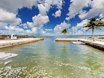 This Lower Keys 6BR/4.5 getaway has a private boat basin and ramp, a pool, and a separate guest house with its own kitchen and living room. Relax in your outdoor oasis at the water's edge before heading out to scuba dive, shop, fish, or even embark on a lobstering adventure.